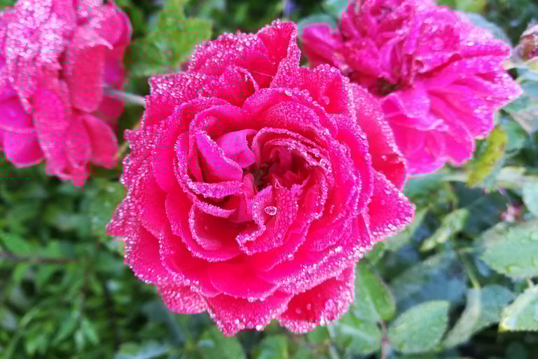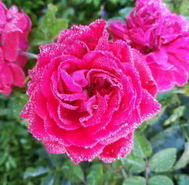 This photo was taken just after dawn in my home garden. It's one of my favorites. The soft early light and the dew still clinging to the rose petals give it a fresh and unique look. Can you smell the fragrance?